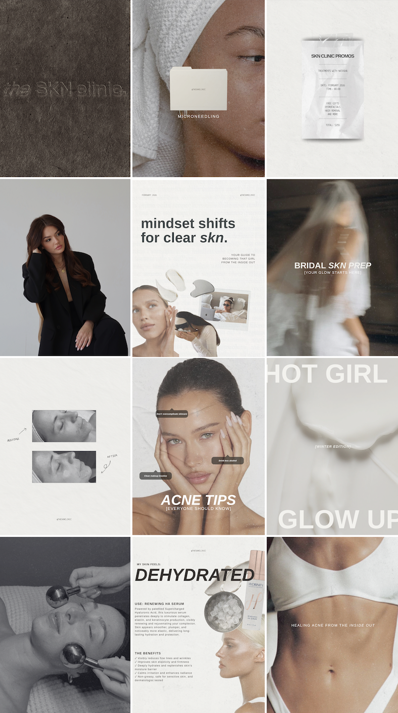 CLIENT / SKN CLINIC SERVICES. FEED PLANNING SOCIAL MEDIA MANAGEMENT + CONTENT SHOOTS SERVICES. FEED PLANNING [IG] @THESKNCLINIC